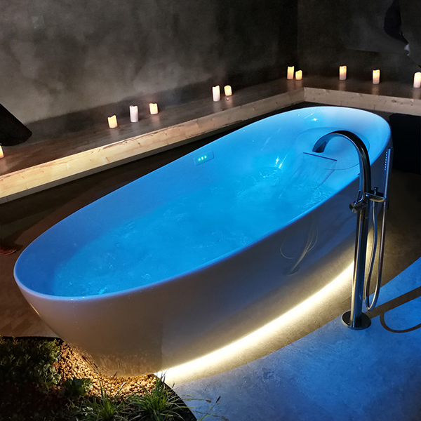 Ванна из искусственного камня TOTO Neorest Zero Dimension 2200х1050 мм отдельностоящая, со сливом-переливом, подголовник с функцией излива, гидро- аэромассаж, нижняя подсветка эффект невесомости, цвет белый PJYD2200PWEE#GW