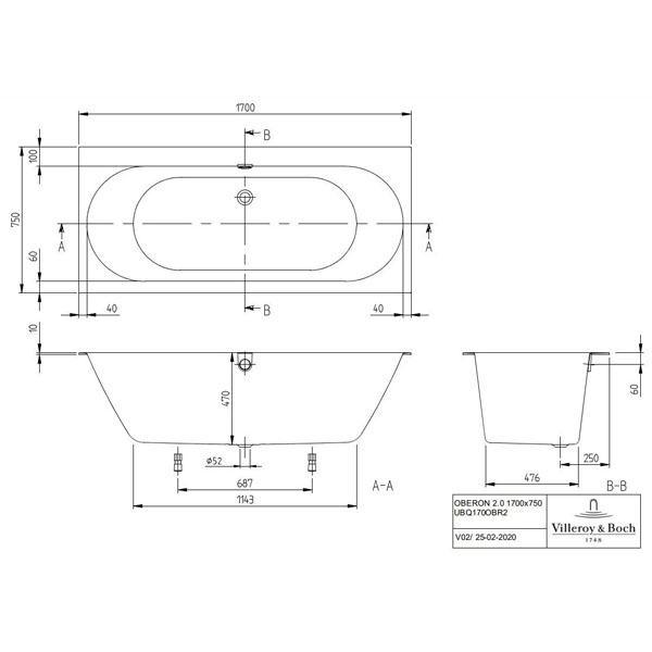 VILLEROY BOCH Oberon 2 0 1700750 UBQ170OBR2DV01: