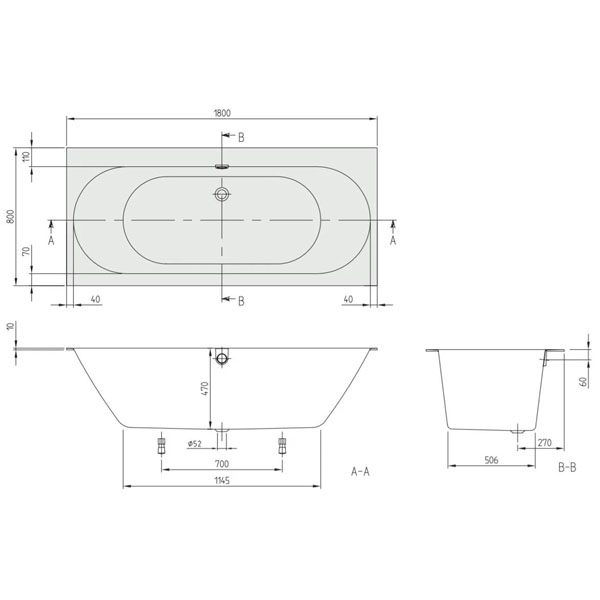 Ванна квариловая VILLEROY BOCH Oberon 2,0 1800х800 мм слив перелив и ножки в комплекте UBQ180OBR2DV-01