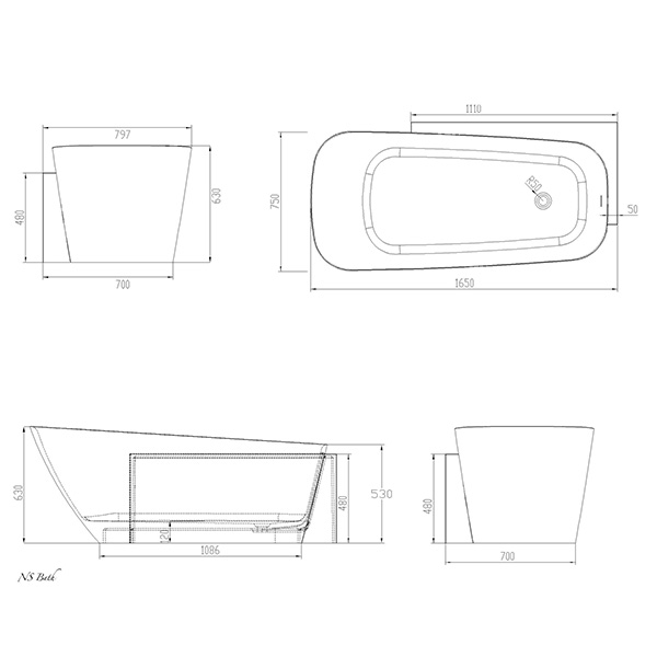 Ванна из композитного материала Polystone NS BATH 1650х800х580 мм белый NSB-16805-P
