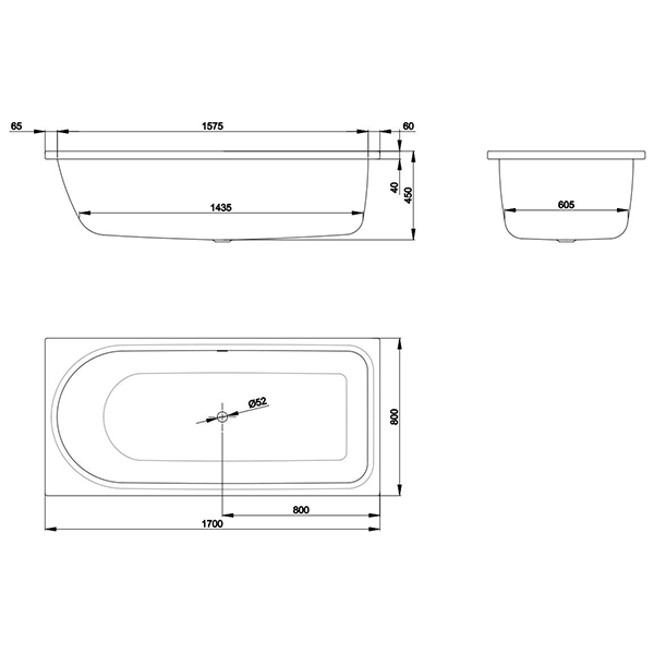 Размеры 1700x800x450/1435 мм