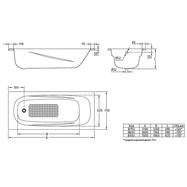 Согласно лабораторным испытаниям под нагрузкой в DIBT* ванна с толщиной стали 3,5 мм. просто не могут деформироваться и выдерживает нагрузку на борта ванны до 300 кг. и на дно ванны до 500 кг.