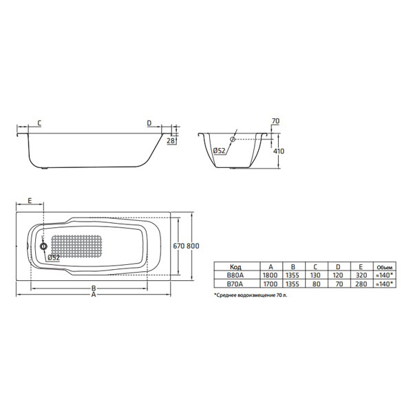 Согласно лабораторным испытаниям под нагрузкой в DIBT* ванна с толщиной стали 3,5 мм. просто не могут деформироваться и выдерживает нагрузку на борта ванны до 300 кг. и на дно ванны до 500 кг.
