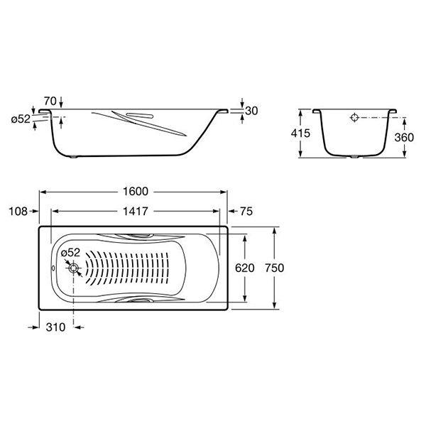 Ванна стальная ROCA Princess 1600х750x415 мм 2203E0000: