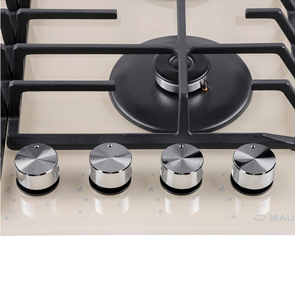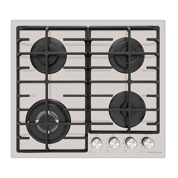 Варочная поверхность газовая MAUNFELD EGHG.64.63CBG/G бежевое стекло, ручки серебристые, электроподжиг, газ-контроль