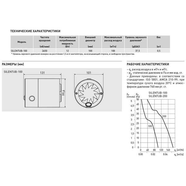 Диаметр воздуховода (мм) 100