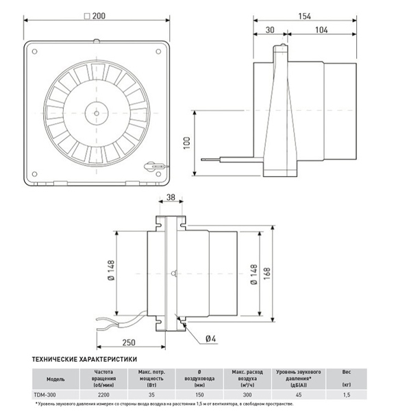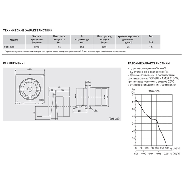 Диаметр воздуховода (мм) 150