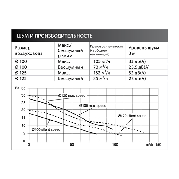 Диаметр воздуховода (мм) 125