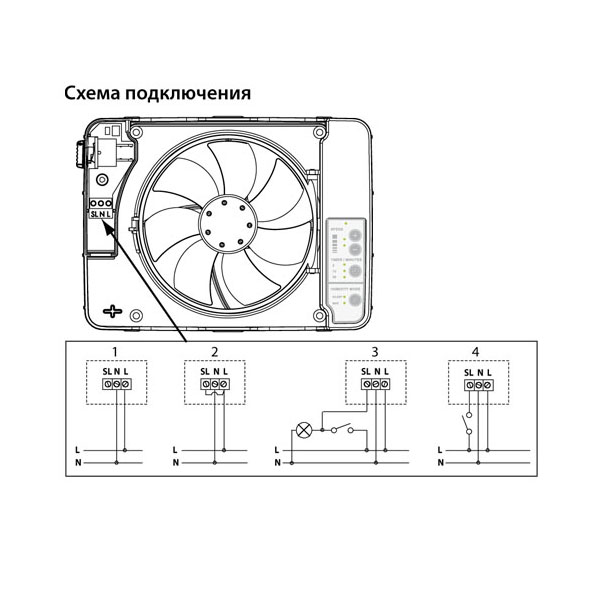 Имеется таймер с функцией задержки запуска и тремя расширенными периодами окончания работы. Дополнительно вентилятор имеет режим автоматической вентиляции и режим непрерывной работы с возможностью регулировки скорости.