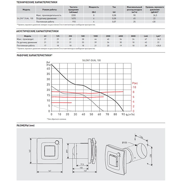 Диаметр воздуховода (мм) 105
