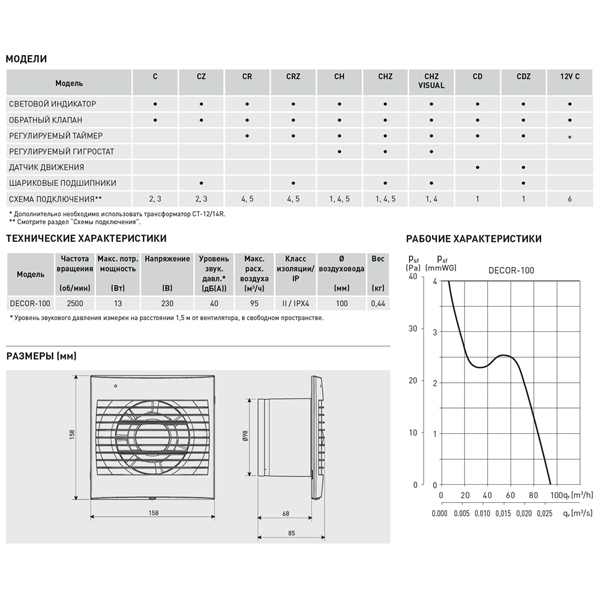 Вытяжной вентилятор Decor оснащен обратным клапаном, что препятствует обратному проникновению воздуха из вентиляции в помещение.
