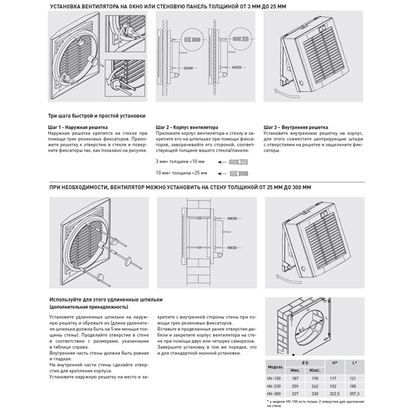 Осевые вентиляторы серии HV-Stylvent оснащены пластмассовым корпусом ABS и клапаном обратного хода. Двигатель 230 В, 50 Гц, IPX4, класс II. Изделия выпускаются в треx вариантах диаметров: 150 мм, 230 мм и 300 мм. Вентиляторы поставляются с дополнительными функциями в соответствии с требованиями монтажа.