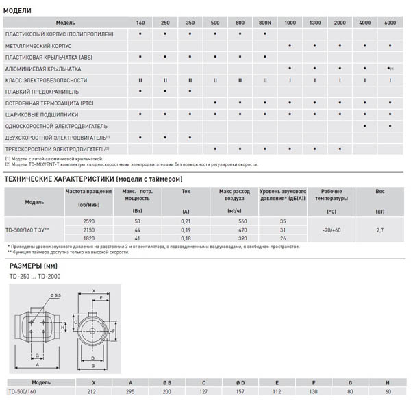 Модели TD-SILENT-T (от 250 до 1000 типораз- мера) оснащаются регулируемым таймером задержки выключения.