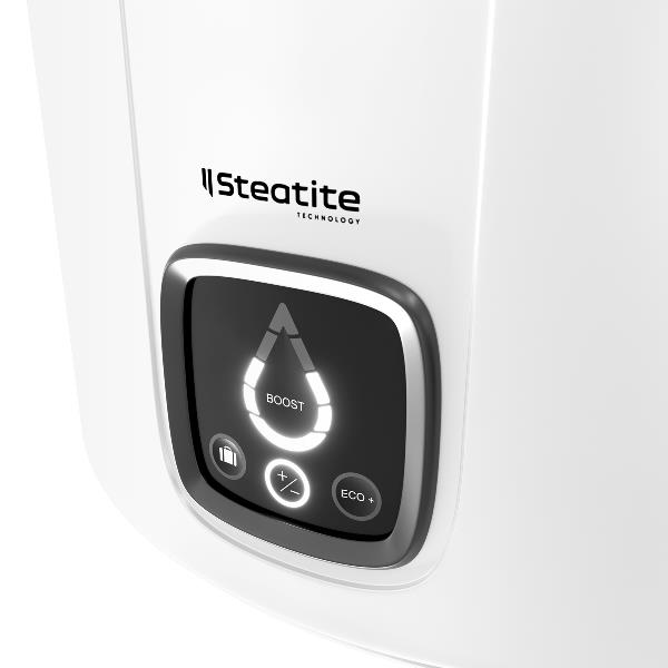 Технология STEATITE минимизирует образование накипи, продлевает срок службы водонагревателя: «сухой» стеатитовый нагревательный элемент не контактирует с водой. Он защищен стальной эмалированной колбой.