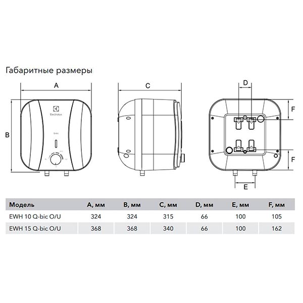 Водонагреватель электрический накопительный ELECTROLUX EWH 15 Q-bic U с подключением воды сверху, индикация нагрева, высокая производительность, экономичный режим, защита от накипи, обеззараживание воды