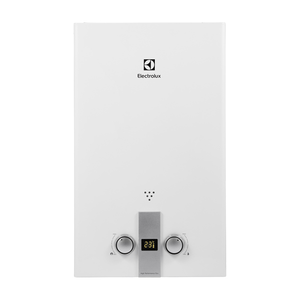 Колонка газовая ELECTROLUX GWH 10 High Performance Eco с электронным розжигом, LCD дисплей с индикацией температуры нагрева воды, индикацией уровня заряда батареи, теплообменник из бескислородной меди, НЕ СОДЕРЖИТ свинец, многоуровневая система безопасности, мощность 20 кВт.