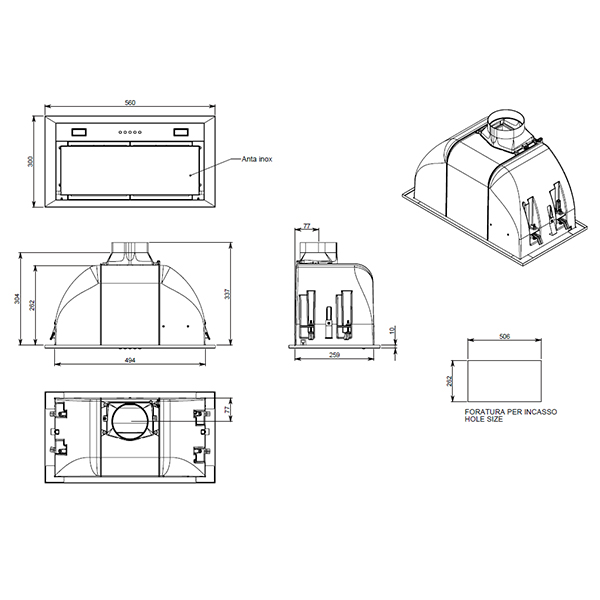 Вытяжка кухонная встраиваемая FALMEC GRUPPO INCASSO EСO 50 BK/BUILT-IN 50 MAX BK: